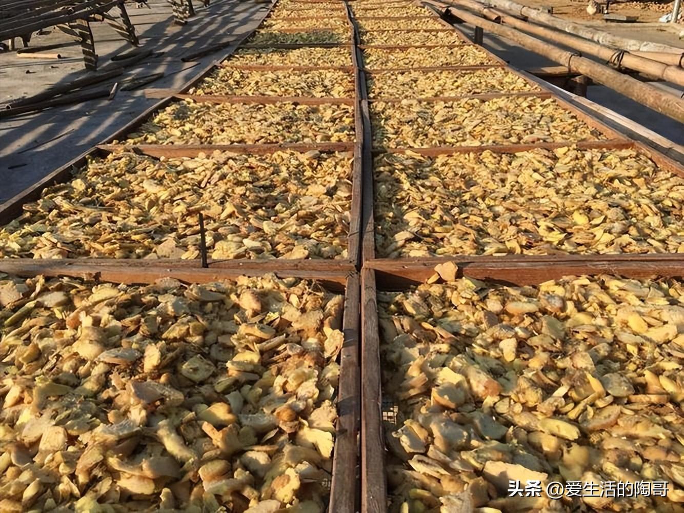 曬好的生薑,可以用來泡水喝,加入一點紅糖,來飲用。