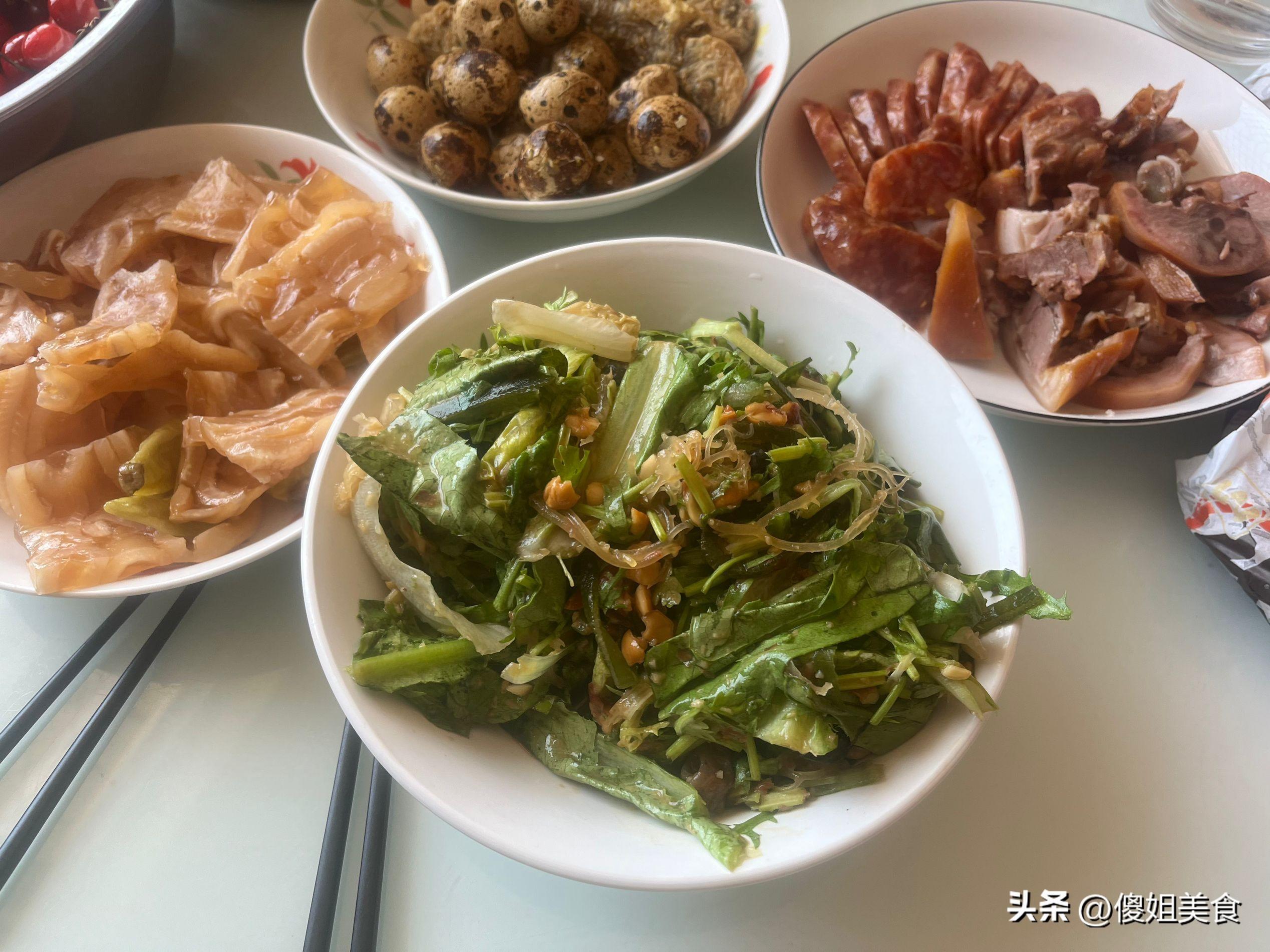 爸媽今年已經快70歲了,別看這麼大歲數了,家裏種了將近30畝地,特別的辛苦。每年這個季節媽媽都會種一些自己常喫的蔬菜,整個夏天我都不用買菜,都是媽媽給帶。今天媽媽就用自己種的苦菊、油麥菜拌了個涼菜,放了芝麻醬、花生碎隨手一拌很好喫,喫一口回味無窮,還是小時候的味道。