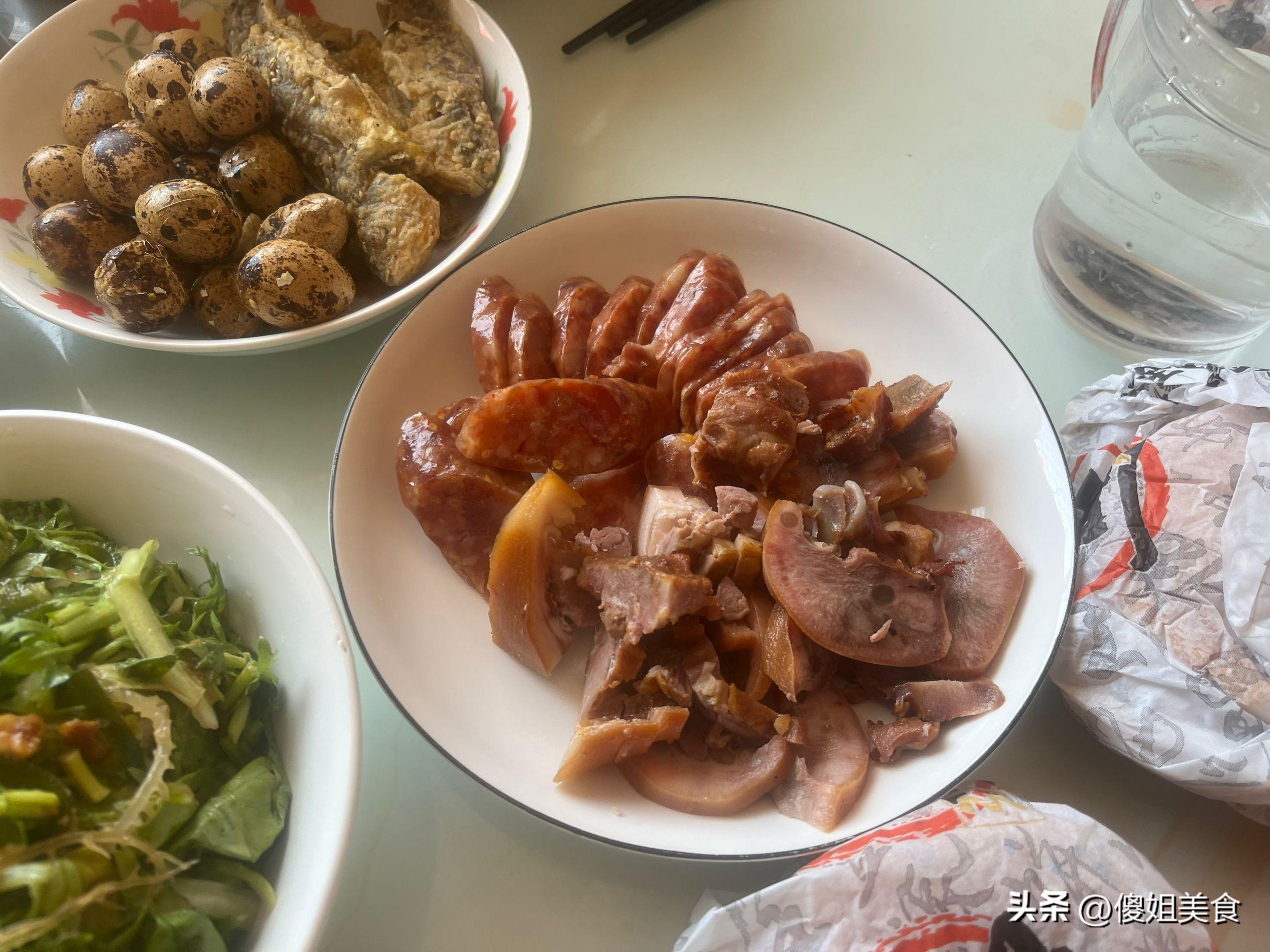 我和老爸去趕了一圈集,看到賣熟食的攤位上豬肉不錯,現燻的,我說想喫了。老爸毫不猶豫的就買了一塊,還順便買了一根臘腸,買回來後直接切一切拼了個盤,豬肉一點都不油膩,就着大蒜喫賊香。