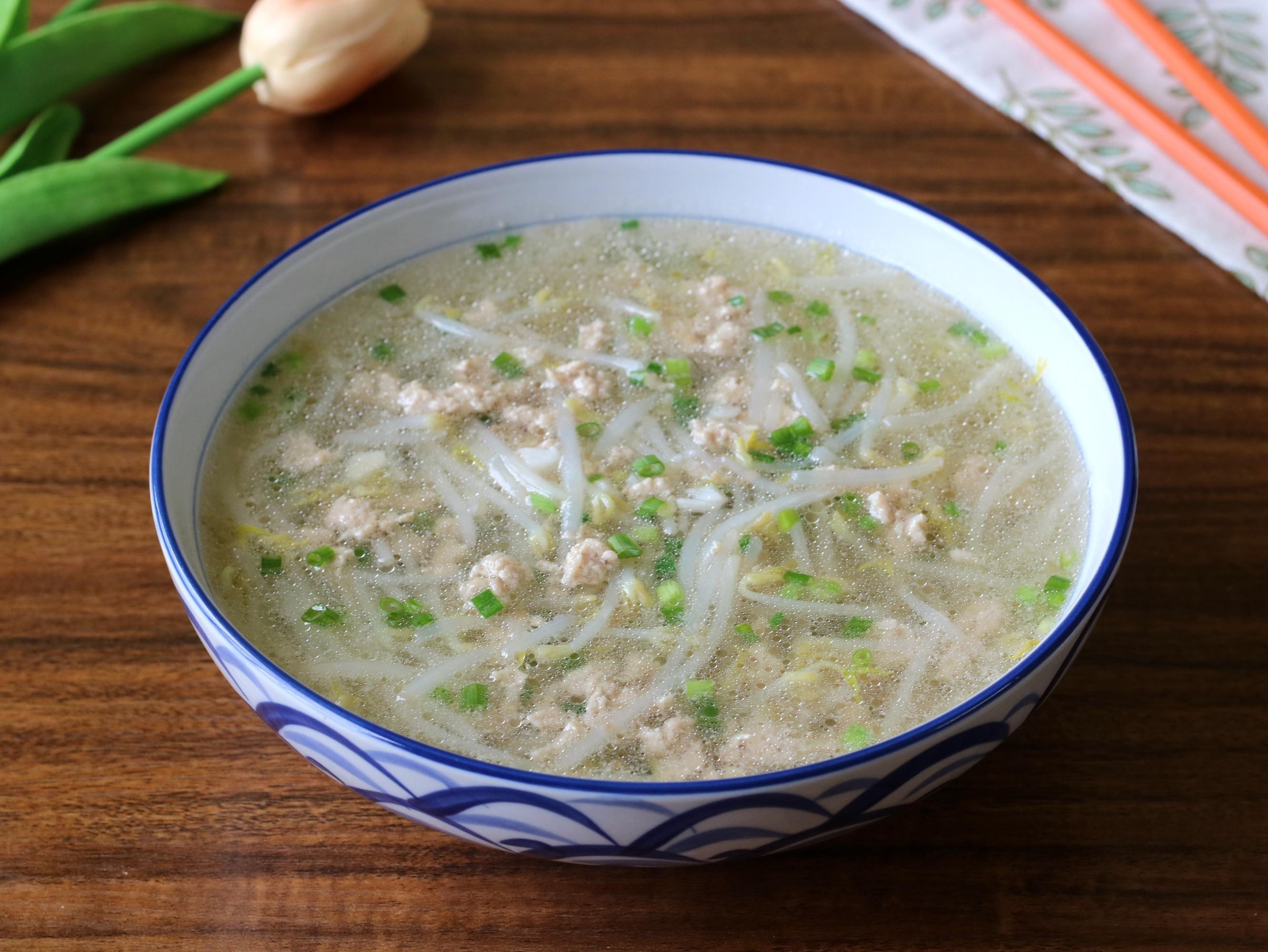 下面就給大家分享綠豆芽肉末湯的做法,需要準備的食材有:肉末 2兩,綠豆芽 3兩,香蔥 適量,生薑 少許,獨頭蒜 1個,玉米澱粉 1勺,生抽 1勺,食用油 適量,鹽 適量。