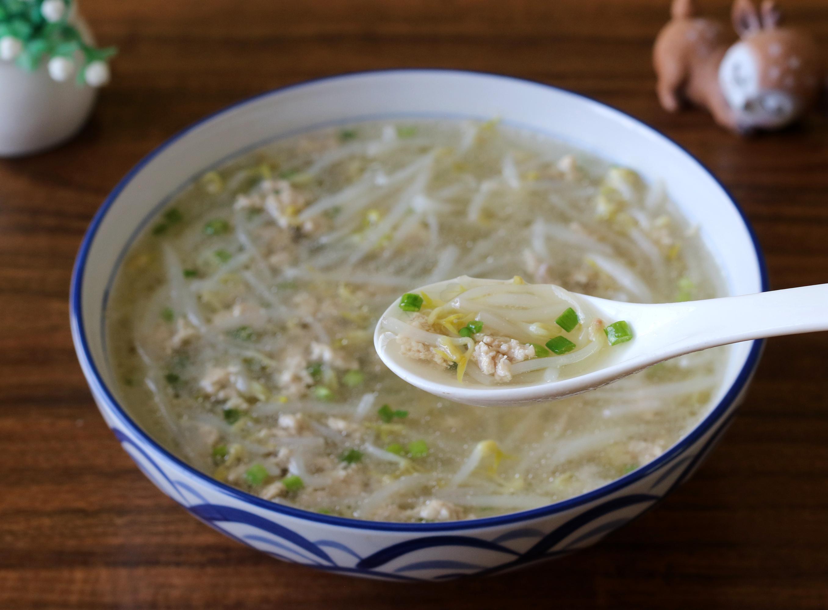 綠豆芽鮮嫩多汁,不管是炒菜還是煮湯都很好喝。今天買菜的時候,看到綠豆芽特別新鮮,買了一些回家煮湯,真的太好喝了!2塊錢的肉末搭配5毛錢的綠豆芽,煮一鍋全家都能喫,清熱又解暑,三伏天尤其要多喝。