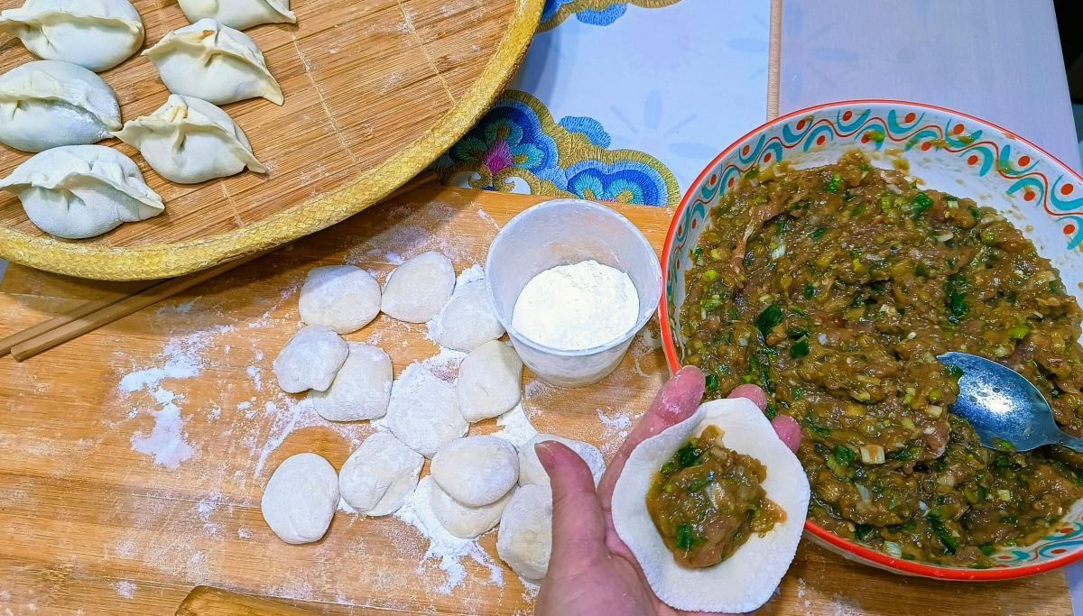 【小貼士】:包茄子餡餃子時,很多人喜歡加鹽剎水,其實是沒有必要的,因爲肉餡中我們沒有打水,調餡時肉正好可以吸收茄子汁,所以包的時候是不會出水的,這樣包茄子餃子營養不流失,而且鮮嫩多汁。