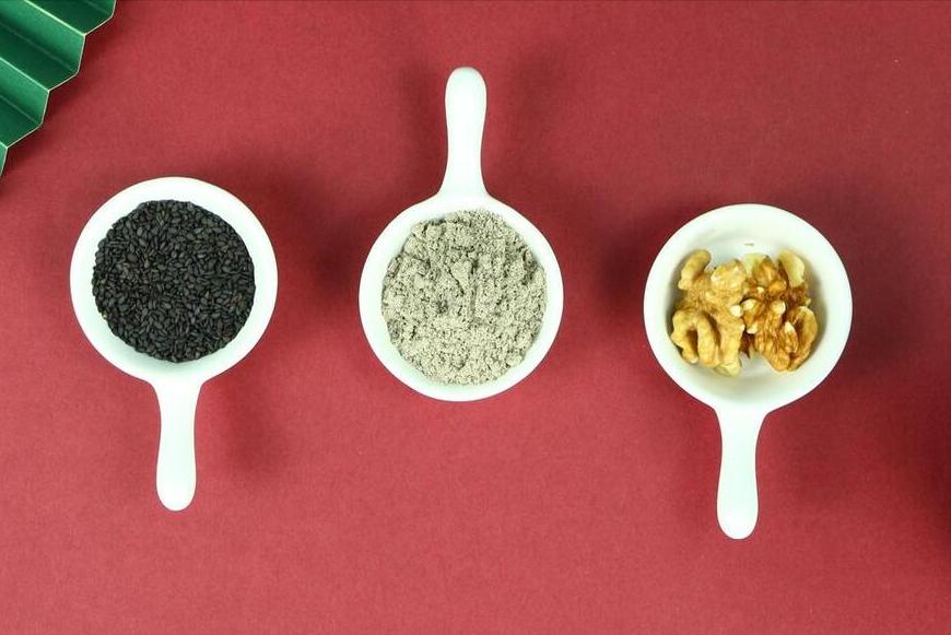 食材:黑芝麻500g、糯米粉500g、核桃適量