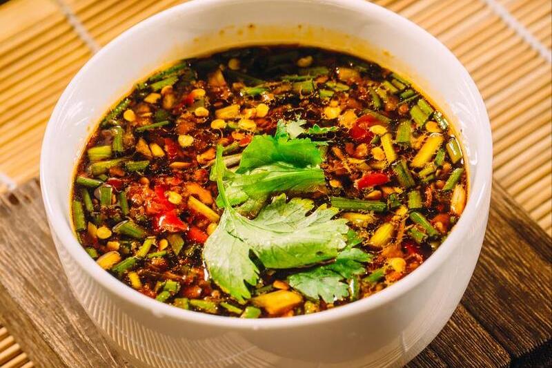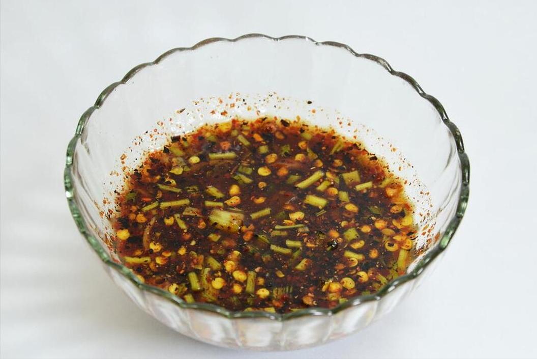 食材:大蒜、小米椒、蔥花、香菜、辣椒麪、白芝麻、醋、生抽、鹽、雞精、白糖、蠔油、花椒油/藤椒油、食用油