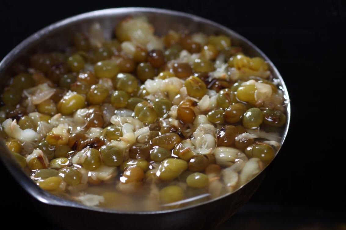 1、首先準備好綠豆,綠豆要進行淘洗,在淘洗的過程中,不需要大力揉搓,更不要衝洗太多次,只需要稍微沖洗2遍就可以啦,把水分控幹。
