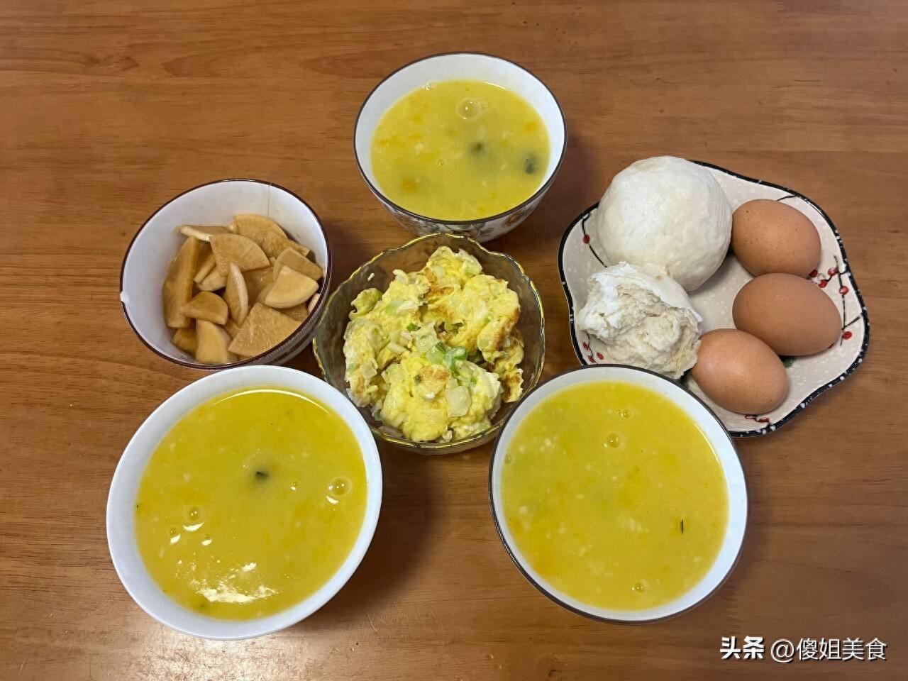 每天早上我是喝一碗粥,來一個雞蛋喫點蘿蔔片,簡單又營養的早餐,喫着很舒服,還好消化,比包子、油條營養多了。