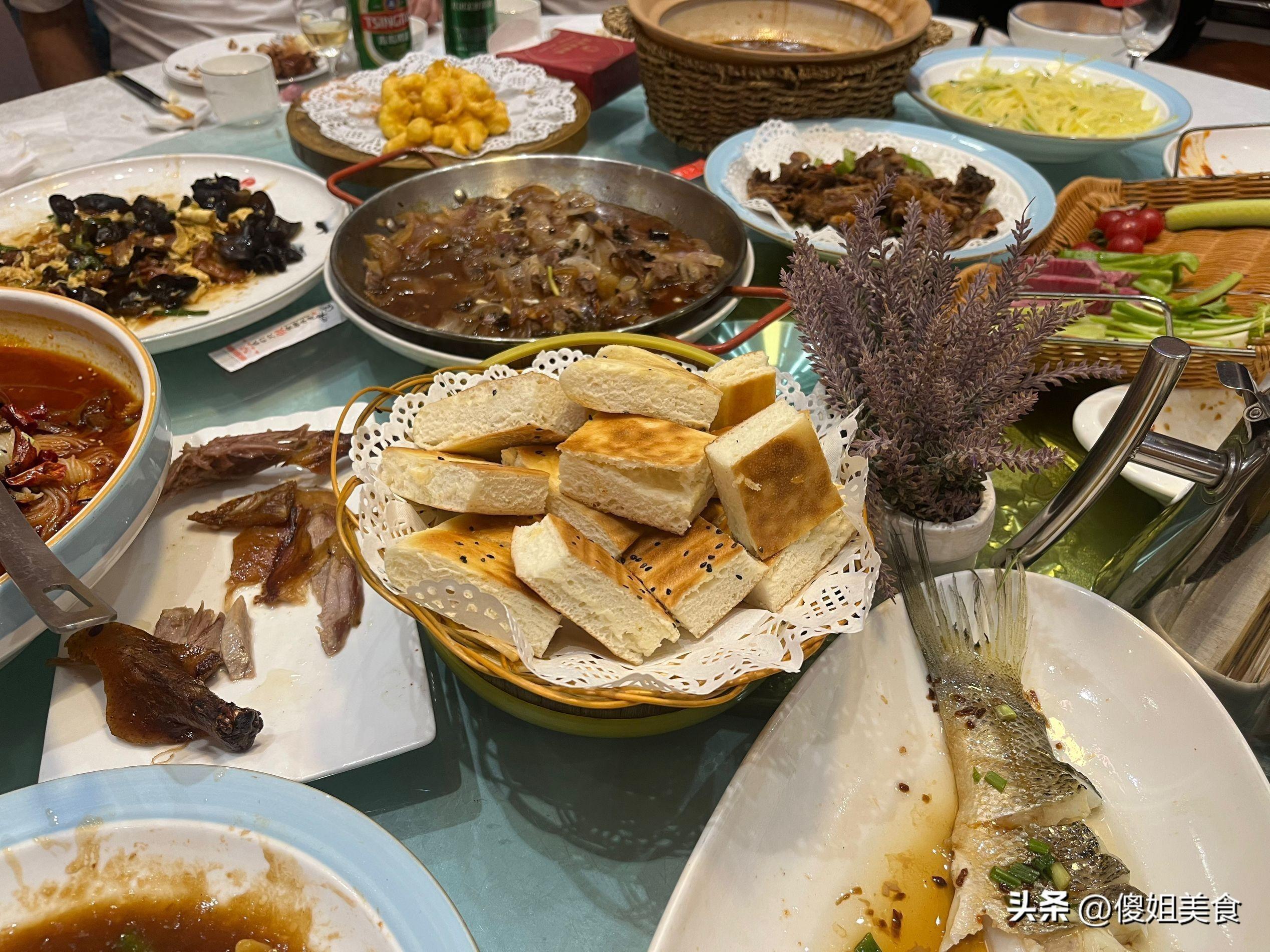 最後兩個菜是牛肉悶餅和大豐收,一共是12個菜,我們喜歡喫麪食,主食要的發麪餅,這麼一大桌子菜最後剩下很多,剩下的我們就打包回家了,一點都沒浪費,這麼一大桌子菜經濟實惠又好喫。