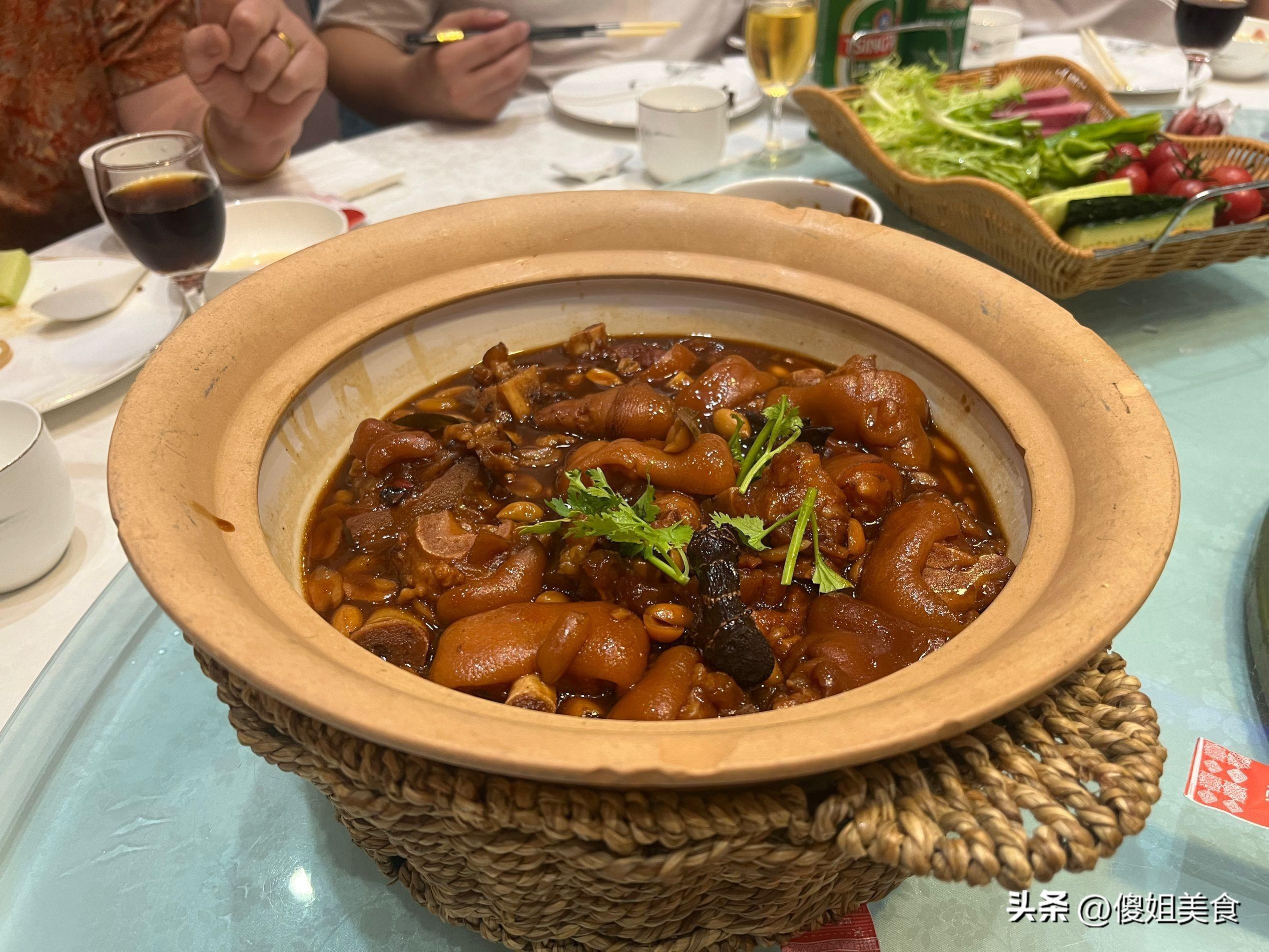 小姑子從小就愛喫豬腳,我結婚後,婆婆每年都會給她滷豬腳喫。這份主教菜專門爲她點的,飯店做的口味和家裏不一樣,她這個口味略帶甜口,軟爛入味,不過特別的好喫,看色澤是不是就很好喫。