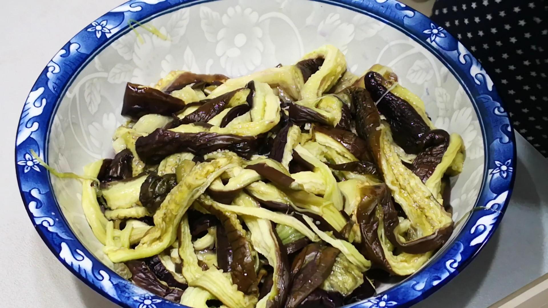 醃好的蒜茄子,喫的時候用筷子夾出來一小盤,可以就着喫麪條、喫米飯或是饅頭,都非常的好喫!