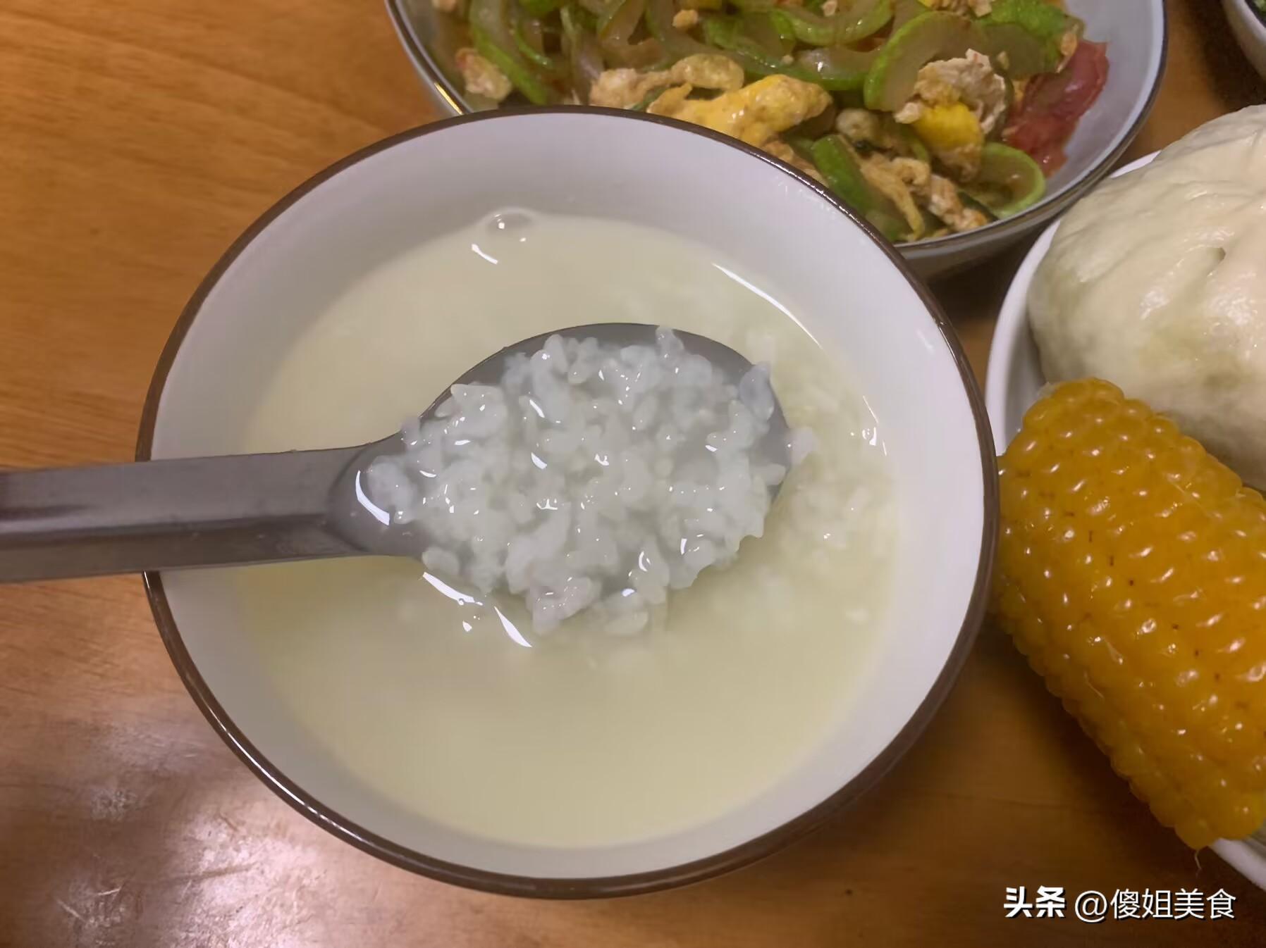 這個大米很香,煮出來的湯汁也很粘稠,這還是婆婆讓四姐夫在外地買回來的,給我捎來一袋。別說這個米和其它米就是不一樣,不用煮時間太久,大概煮20分鐘就可以,米粒就會煮的很爛,噴香好喝,我和兒子能喝兩大碗。