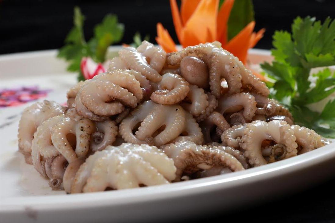 6、煮多久也是一個很重要的問題,煮的時間太長了,八爪魚容易變老,海鮮變老了就嚼不動了,還會肉質緊縮。根據八爪魚的個頭來決定,煮上30秒鐘至60秒鐘的時間,馬上撈出來,肉質更Q彈,這是第2個技巧。脆嫩Q彈,鮮香無比,趁熱開喫吧!