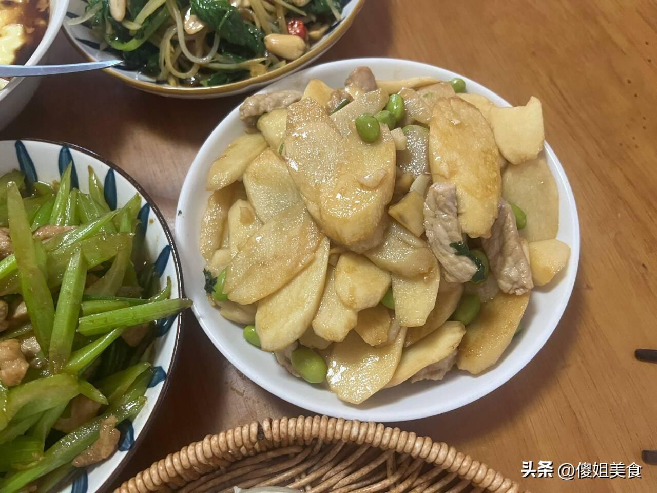 山藥是我家兒子愛喫的下飯菜,在這呆的這段時間舅媽隔一天會給他炒一次,兒子說比我炒的好喫多了。山藥去皮後切成薄片,放點鮮豬肉一炒,很好喫。我嚐了嚐確實有滋有味,比我炒的好喫多了。