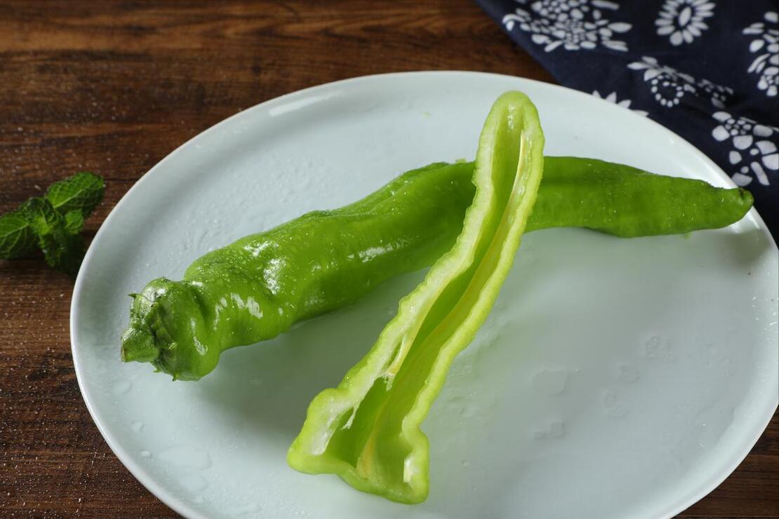 1、準備幾個尖椒,把尖椒放在水中清洗乾淨,然後將水分控幹,如果不能喫辣的話可以把裏面的瓤子挖掉,能喫辣的話留着就可以了。