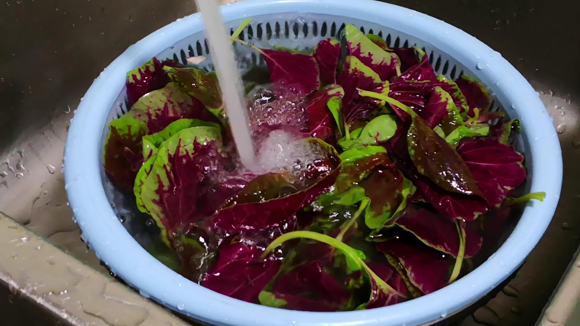 首先,買回來的莧菜要摘洗一下,注意一定要去掉老葉和硬梗,這一部分口感不好,會大大影響體驗感,然後進行清洗,一般放淡鹽水中浸泡5分鐘,然後再衝洗,這樣就可以放心大膽的食用了。