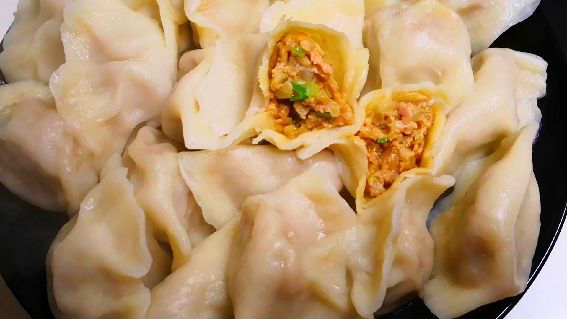 待鍋中的水再次沸騰時加入一小碗清水,然後繼續煮,全程加兩次水,煮三個開,餃子就會全都漂浮起來了,而且會變得胖鼓鼓的,這時餃子就熟了,關火撈出裝盤即可,真香啊!