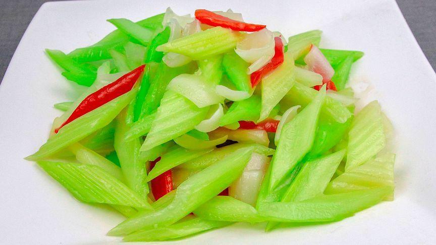 2、熱鍋涼油,放入西芹和胡蘿蔔翻炒幾下。加入百合繼續翻炒,放入鹽和雞精調味,翻炒均勻即可。