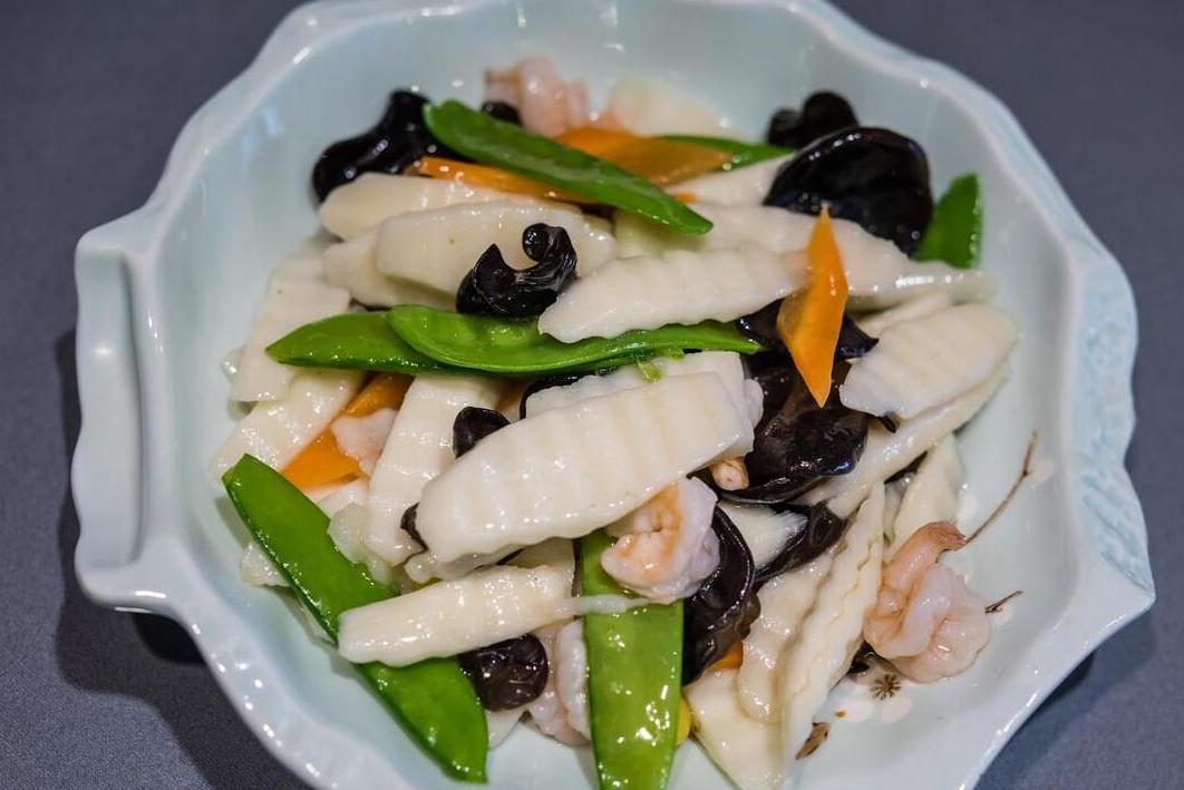 山藥切片,青辣椒切片,大蒜切末,木耳提前泡發後洗淨,鍋內倒油燒熱,先把蒜末爆香,接着倒入山藥、木耳翻炒,炒上一陣子直至徹底斷生後,加入鹽和雞精來調味,隨後再將青辣椒倒進去,簡單翻炒兩下,出鍋。
