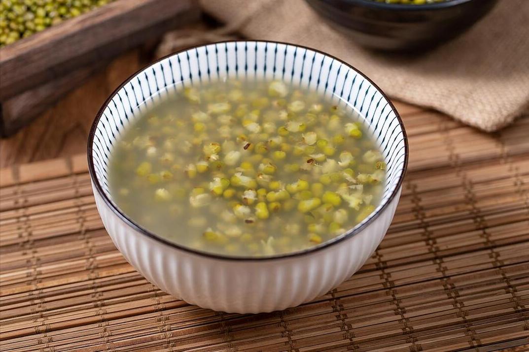 綠豆淘洗乾淨後,將其放在水中浸泡1個小時,然後倒在鍋內,加上適量的清水開始煮。大火煮開以後,改爲小火煮上1個小時的時間,煮好後關火,靜置幾個小時晾涼,或者放冰箱冰鎮一下,開喝。