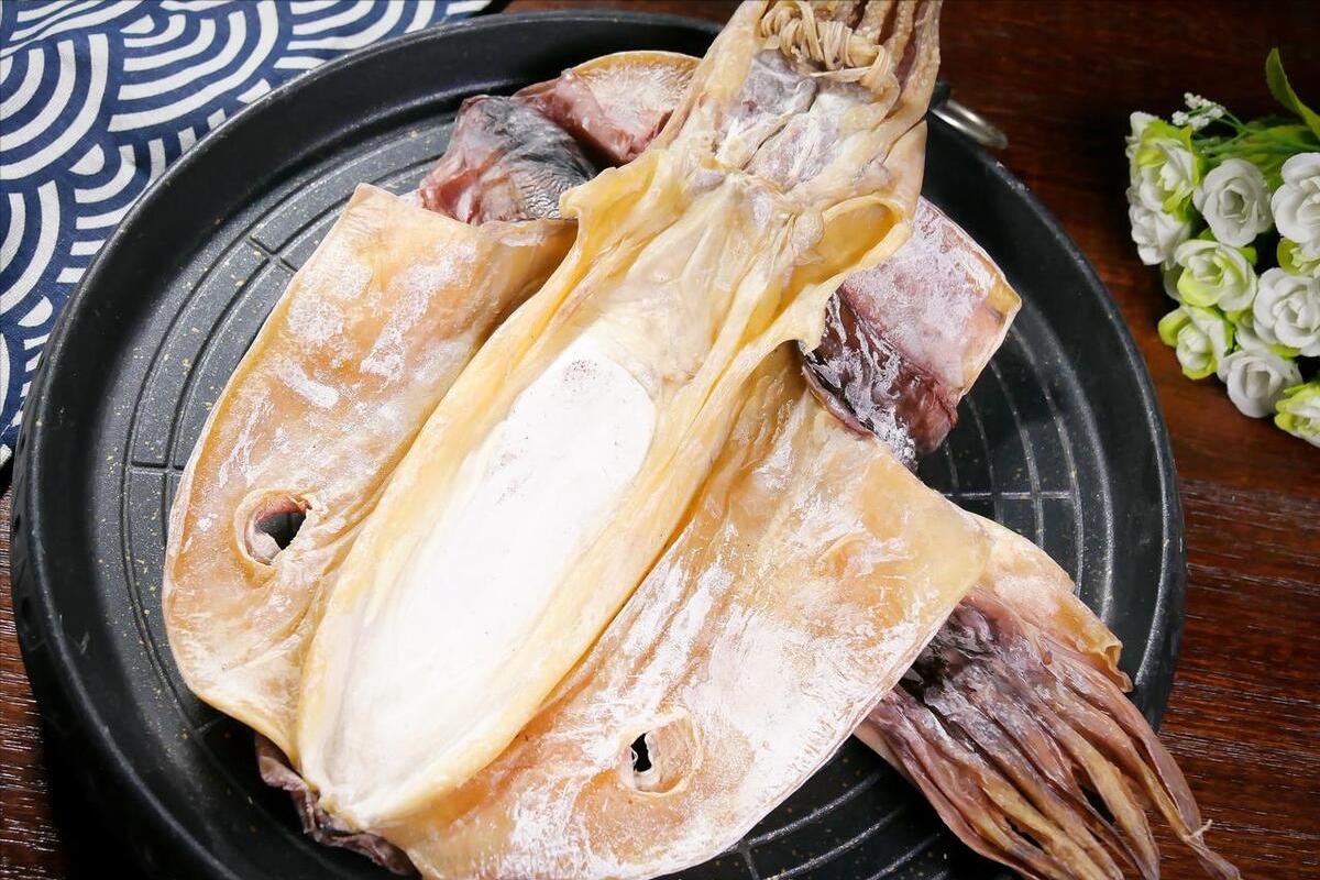 1、首先就是魷魚的挑選,我姐夫家就是賣魷魚的,所以每次去買都會直接給我品質最好的,大家在挑選的時候可得仔細一點,別買到不新鮮的了,看看魷魚表面,有白霜的話說明新鮮程度高,再一個捏一下軟硬,如果是富有彈性的,也是放心購買的。