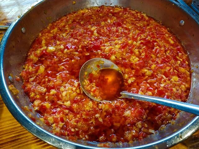 “辣妹子辣 辣妹子辣,辣妹子從小辣不怕,辣妹子長大不怕辣,辣妹子嫁人怕不辣,吊一串辣椒碰嘴巴。”每當聽到這首歌,眼前的景象就是一望無際的辣椒,而眼下正是辣椒大量上市的季節,不但品質高,而且價錢也便宜,對於無辣不歡的人,則是大飽口福的大好時刻。