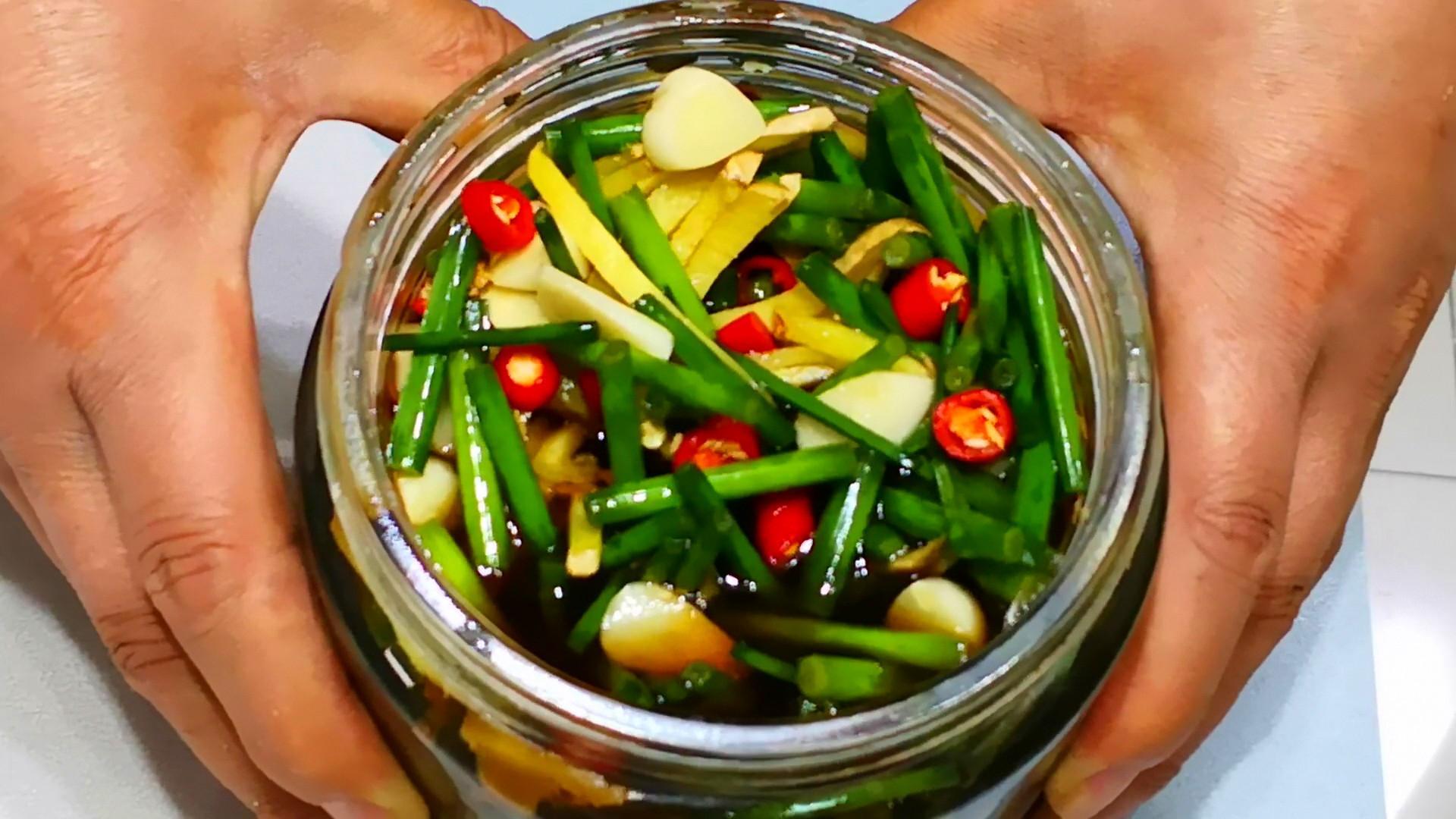爲了醃製好的韭苔保存的時間更久,我們在醃製的過程中,要儘量做到把菜刀、菜板和瓶子都消毒處理,並且要保證無油無水。