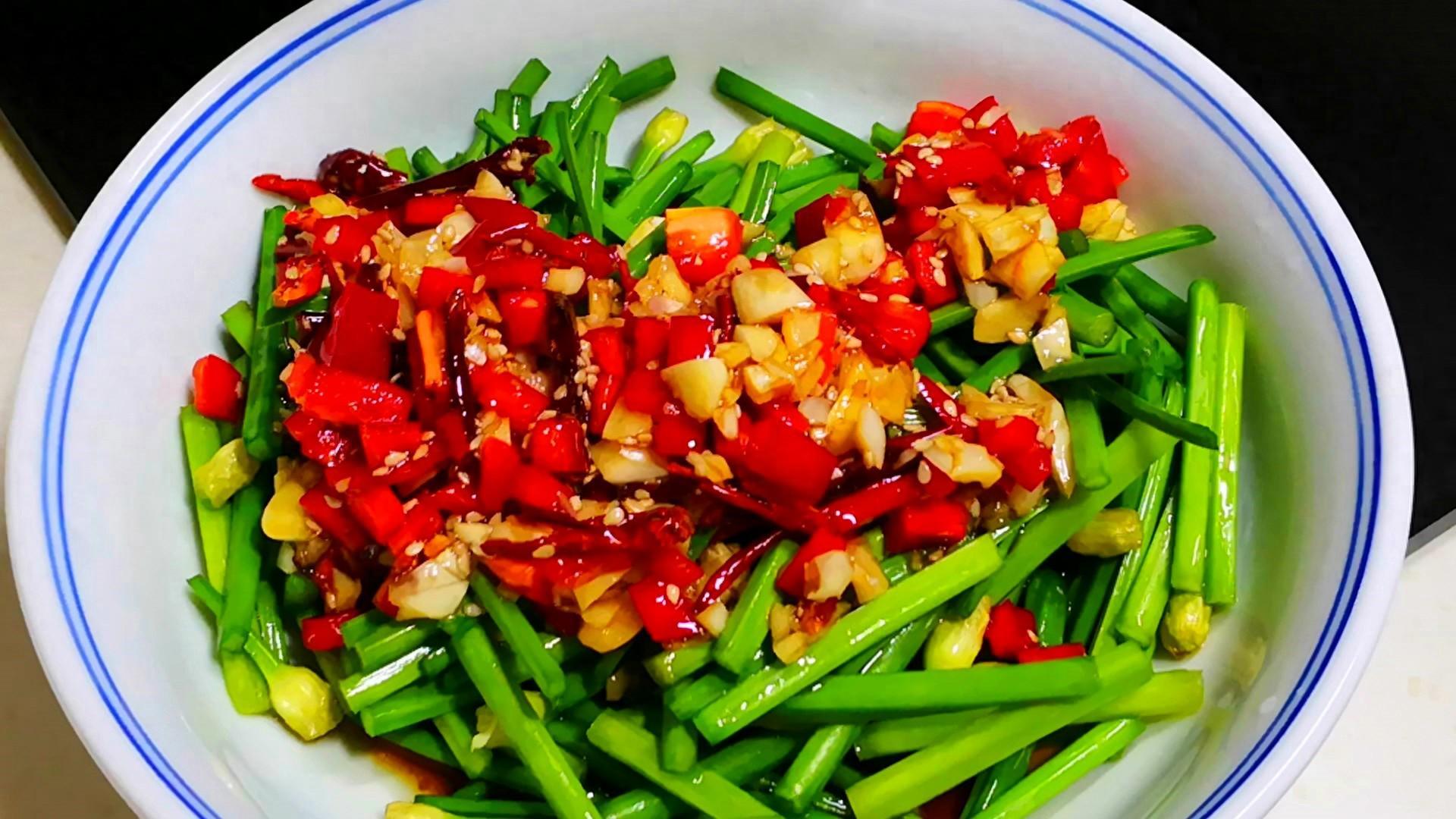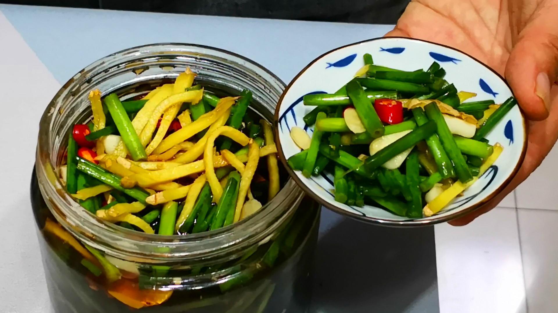 韭苔先用食鹽醃製一下,可以減輕它的辛辣味,另外,口感也會更脆嫩,喫着更爽口。