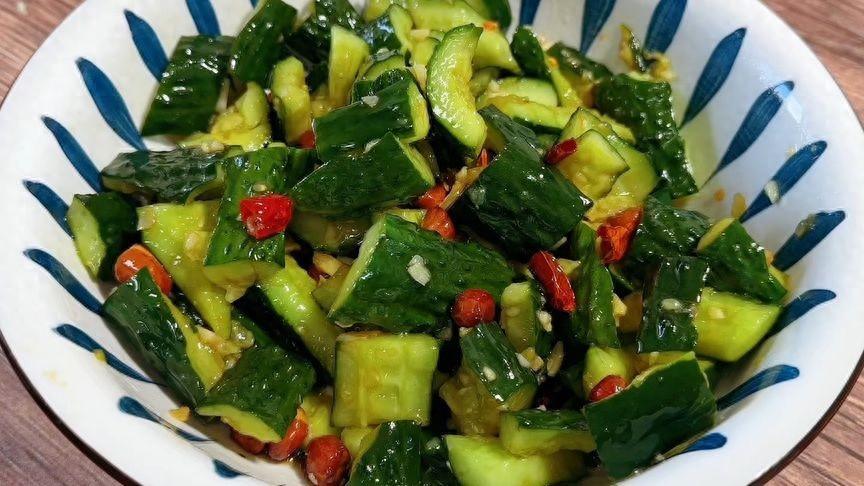 黃瓜是夏季的常見蔬菜,口感清脆。將其洗淨拍碎,加入蒜末、生抽、陳醋、香油、鹽等調料,簡單一拌,就是一道清爽可口的涼拌黃瓜。它能夠清熱解毒,幫助消化,是夏日餐桌上不可或缺的一道小菜。
