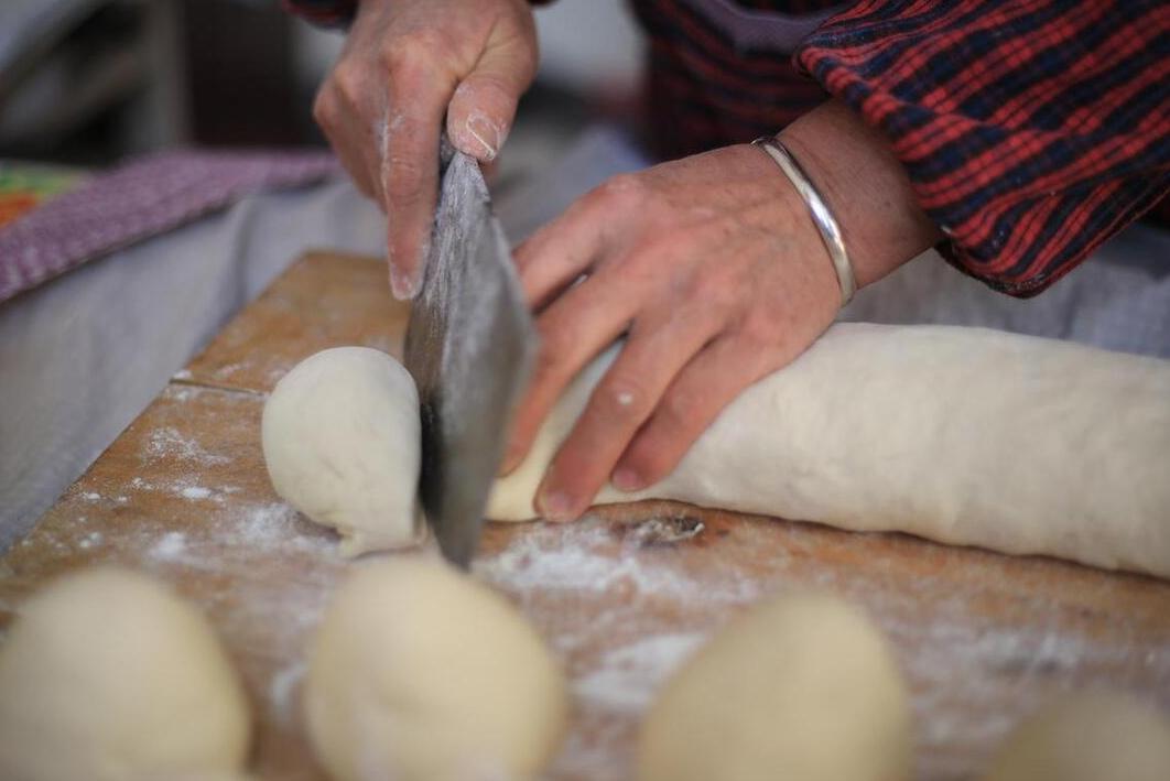 5、揉好後的麪糰,將其分成數個劑子,把每一個劑子都繼續揉搓,揉搓成饅頭的形狀。接下來,準備好鍋子,往鍋子裏添上清水,然後再把饅頭放到蒸籠中,記得提前鋪上一層籠布。