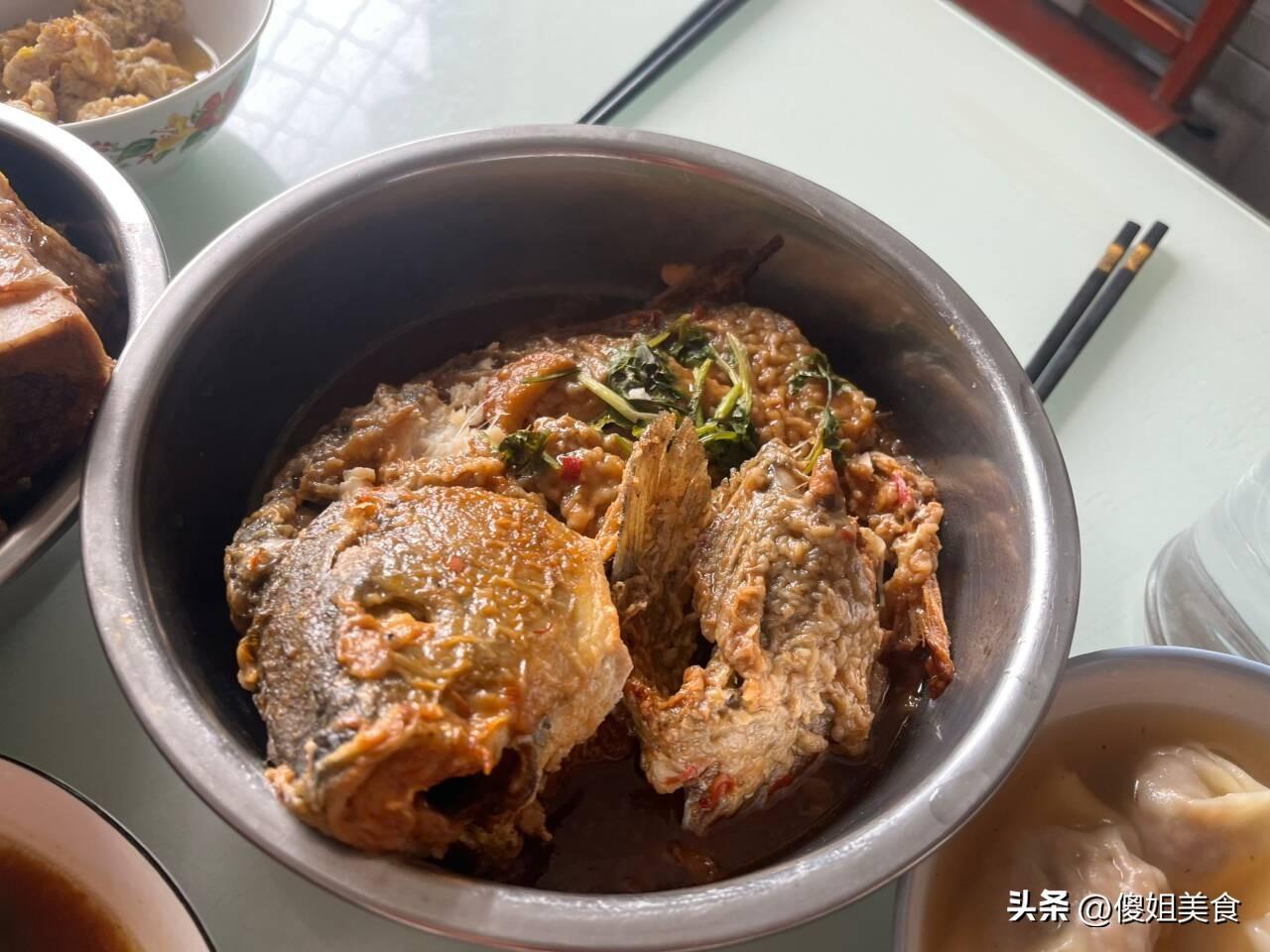 打小我就喜歡喫魚肉,什麼魚都愛喫,尤其是魚頭,這條魚是紅燒鯉魚,我們這邊的特色就是紅燒鯉魚,逢年過節必不可少的一道菜。鯉魚收拾好後,裹滿面糊用油炸一遍,然後再放在鍋裏燉,放上各種調味品。弟媳婦特意把這大魚頭給我留着了,別說這個魚頭是真好喫。