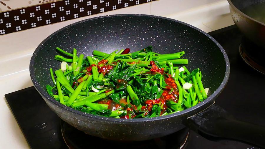 炒空心菜時火候一定要掌握好,要中大火快速翻炒,而且時間不要炒得過久,這樣炒出的空心菜纔會梗脆葉綠不發黑,又鮮又嫩超好喫!另外,炒空心菜時加入一塊腐乳一起炒,味道會更美味~我是曉峯,喜歡曉峯分享的美食,不要忘記關注喫貨峯子哦!