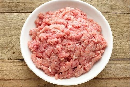 2、在泡髮香菇的同時,我們來處理豬肉,把豬肉切碎或者用絞肉機絞碎,然後往裏面加上適量的鹽、黑胡椒粉、雞精、蠔油、老抽、料酒、澱粉,最後切點蔥花和薑末,也倒進去,充分攪拌均勻。