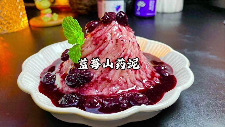2、把山藥泥裝入裱花袋,擠出喜歡的形狀。藍莓醬加少許清水和蜂蜜調勻,淋在山藥泥上即可。