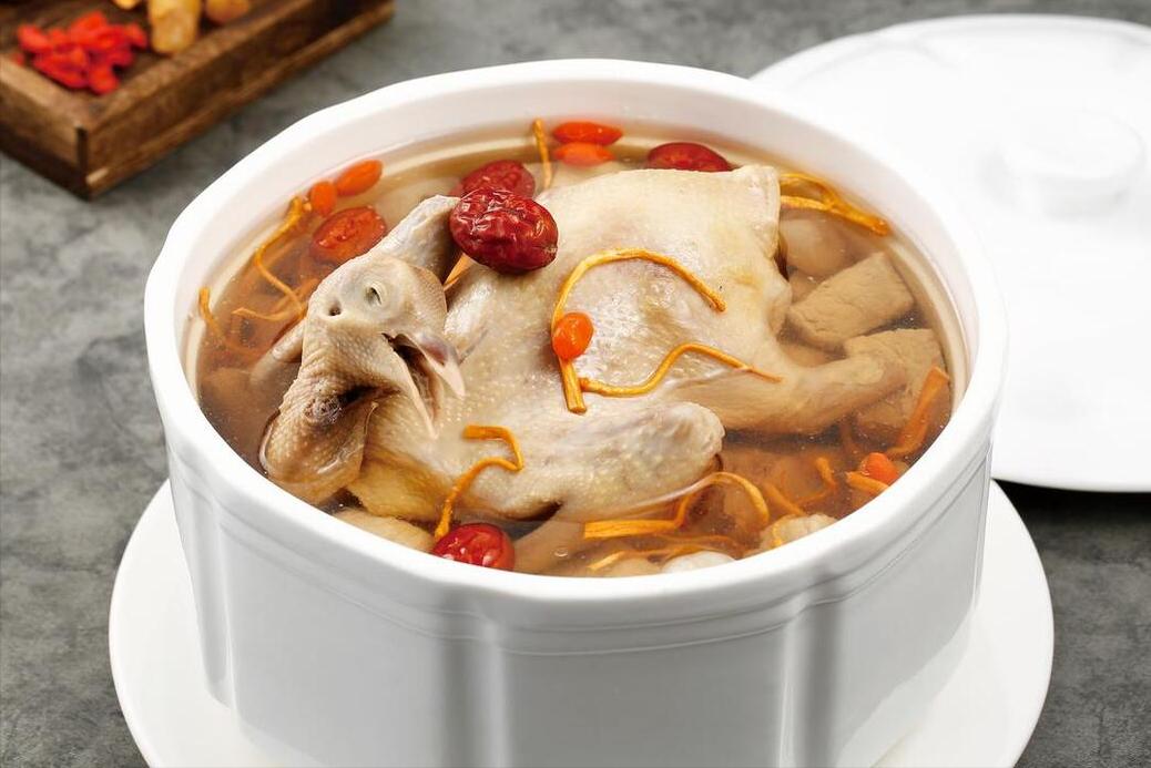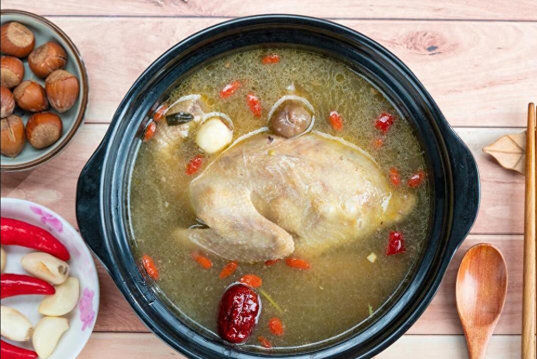 6、接下來把紅棗和枸杞放進去,然後蓋上蓋子,改爲小火慢慢燉就可以了,燉上1個小時左右的時間,不着急的話,燉2個小時鮮味會更濃郁的,燉好之後往裏面來點鹽調味,然後將其攪拌至融化,就可以舀出來開喝了,鮮香無比,營養足!