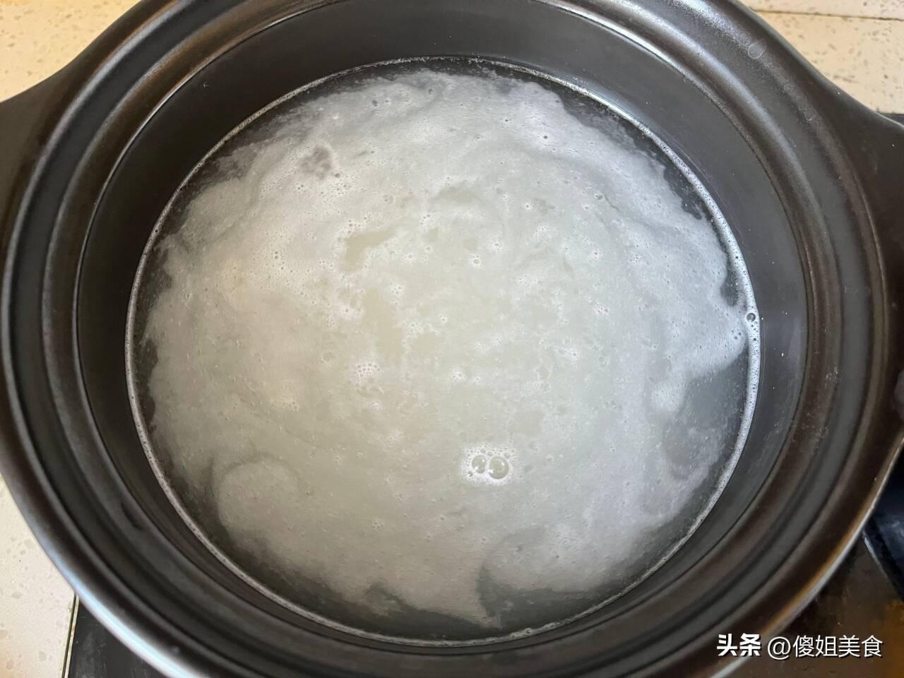 2、大米可根據自家的口感,喜歡稠一些的就多放點米粒,稀點的就少放些,我們全家都愛喝粘稠稠的那種。準備一勺大米,用清水淘洗3-5遍,淘洗過的米水可以用來澆花。然後把米粒放入砂鍋內,往裏面倒入適量的純淨水,先用大火煮沸騰,把上面一層白色的東西撇出來,然後再轉成小火煮。