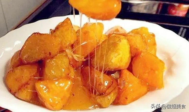 5、享用:拔絲地瓜最好趁熱喫,這樣口感最爲香甜軟糯,糖絲拉得長長的,特別有趣。若等涼了,糖漿會變硬,口感也會稍遜一些。