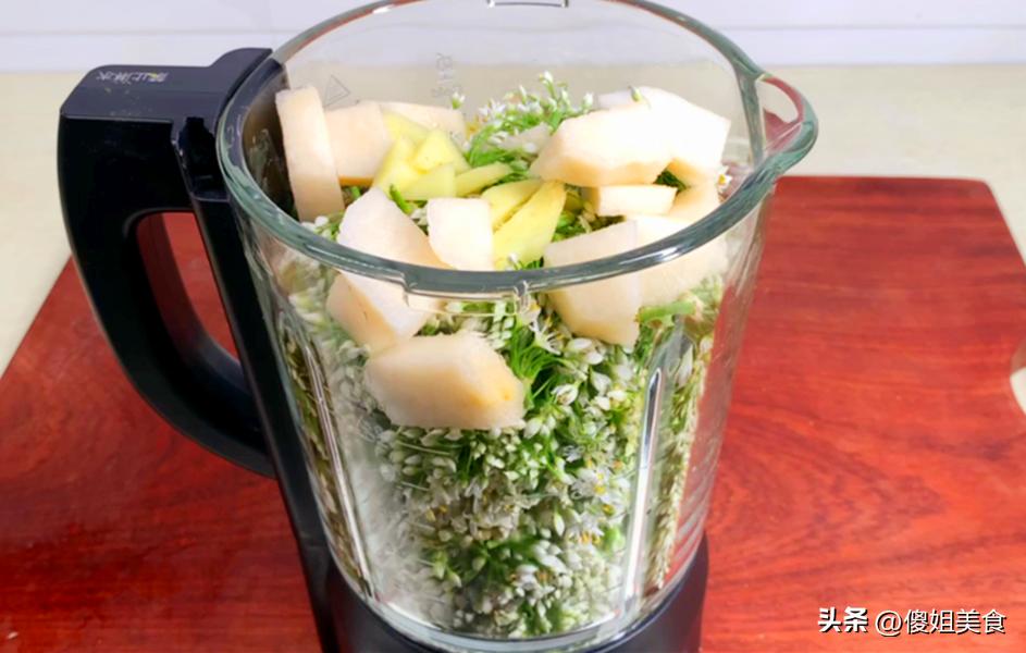 所需食材:韭菜花、大蒜、姜、鹽、梨