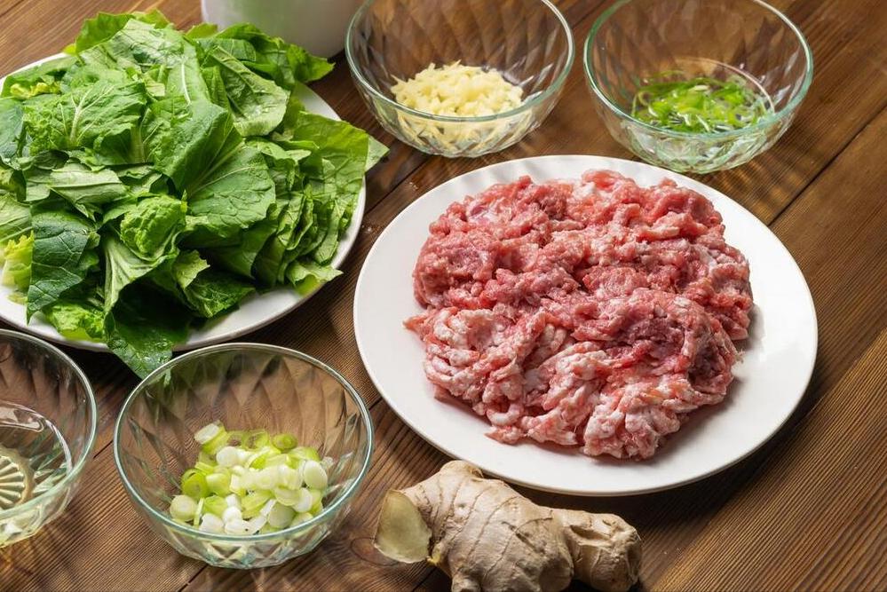用的:肉餡、蔥姜、花椒水、食鹽、五香粉、雞精、白胡椒粉、生抽、澱粉、蛋清、食用油