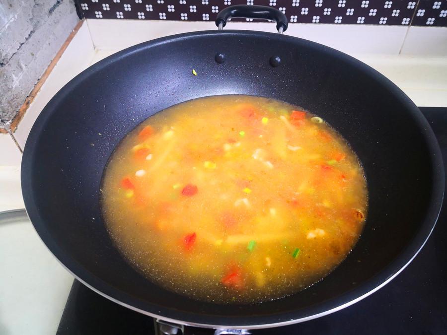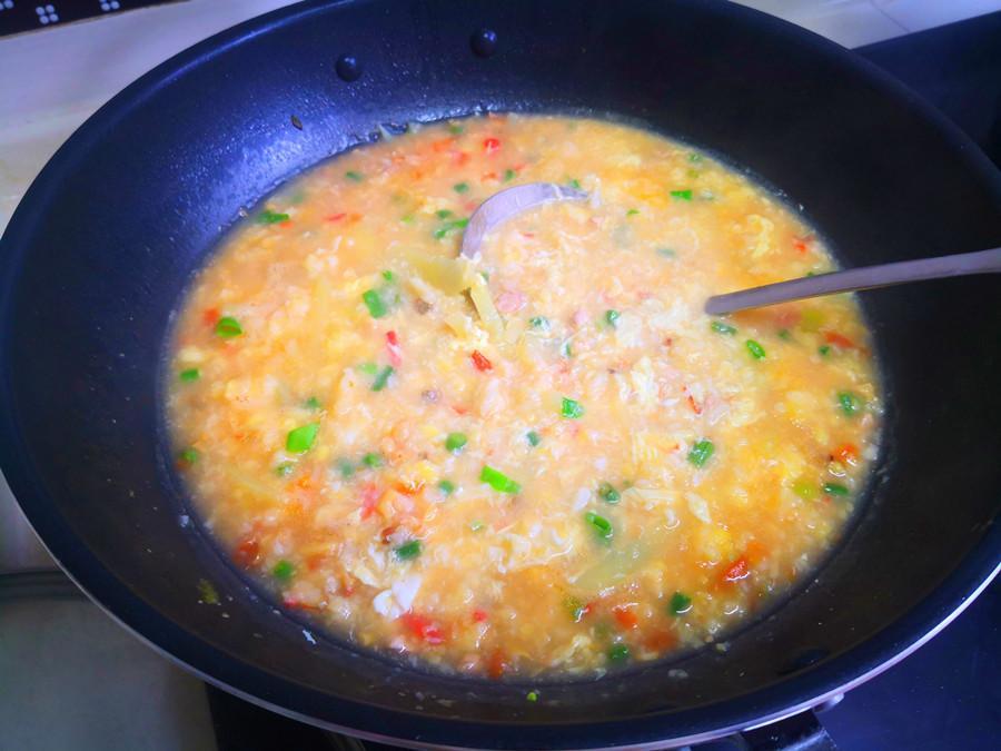 4.兩分鐘後開鍋,將麪疙瘩分少量多次慢慢倒入,一邊倒一邊用筷子輕輕攪拌,最後再淋入一個打散的雞蛋液,撒上些許小蔥花,加入適量的雞精、香油、食鹽和胡椒粉,攪拌均勻後就可以關火出鍋了,好鮮哦!