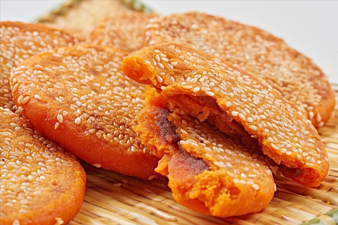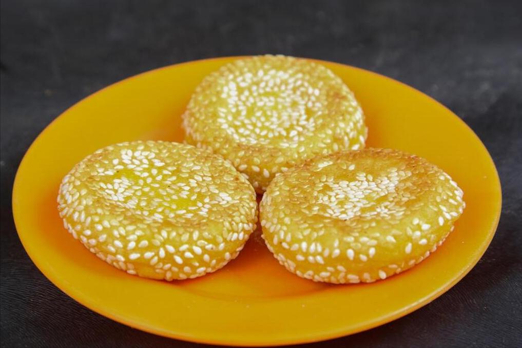 食材:南瓜、糯米粉、白糖、白芝麻