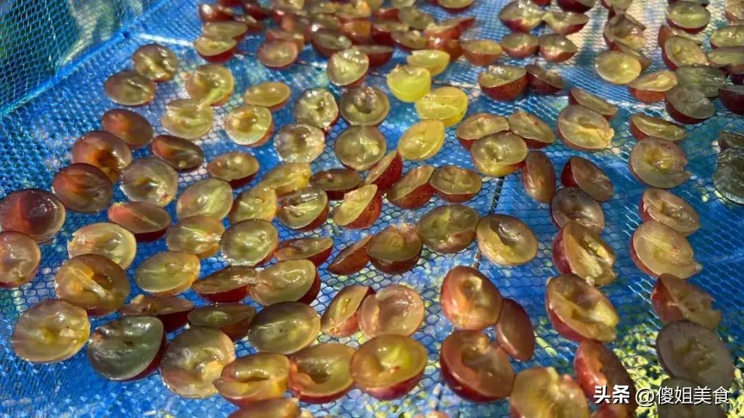 我是把葡萄切開去籽後晾曬的,這樣更快捷,曬好的葡萄乾可以放在密封的玻璃瓶或保鮮袋中,放在陰涼乾燥的地方保存。到了冬天,無論是配粥、泡茶,還是作爲零食單獨食用,都是極好的選擇。更何況,自制的葡萄乾沒有任何添加劑,喫得更安心。