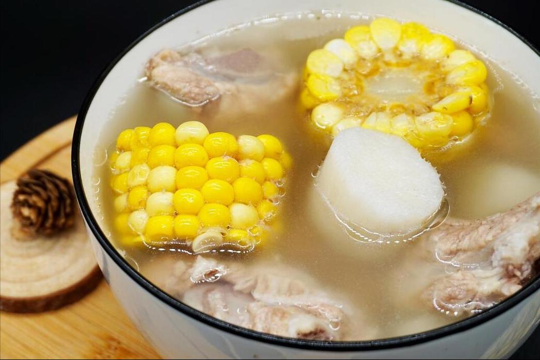 食材:山藥、玉米、排骨、薑片、蔥花、鹽、料酒、清水