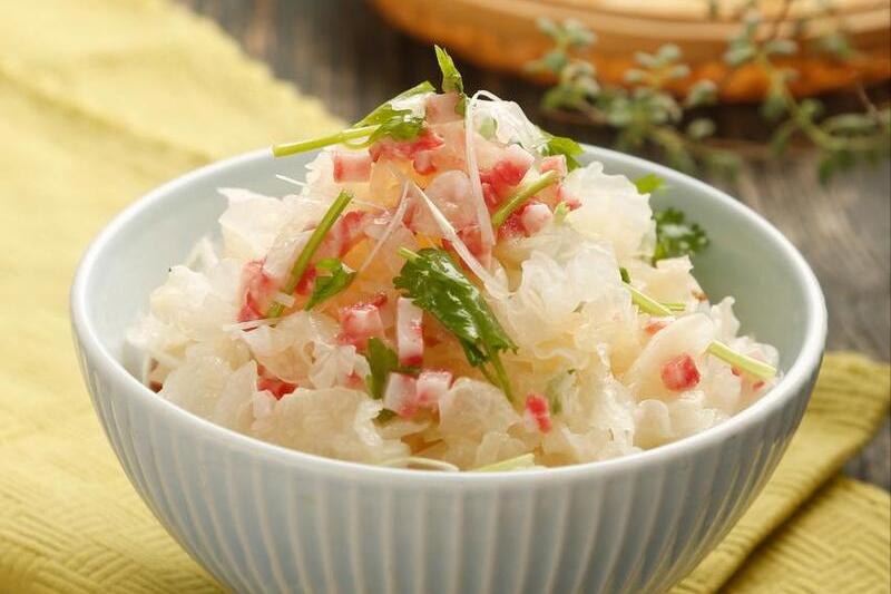 食材:銀耳、香菜、小米椒、大蒜、鹽、雞精、白糖、生抽、醋、蠔油、辣椒油