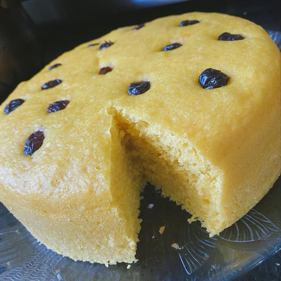 2、攪拌後就成了比較粘稠的狀態了,隨後準備一個容器,刷上食用油,然後將其裝進去就可以啦,最好抹平。接下來在表面放上幾顆紅棗。往鍋內倒水,將其放上去醒發一下,醒發30分鐘左右,發酵成2倍大之後,開火開始蒸,燒開後轉中火蒸25分鐘,出鍋脫模。