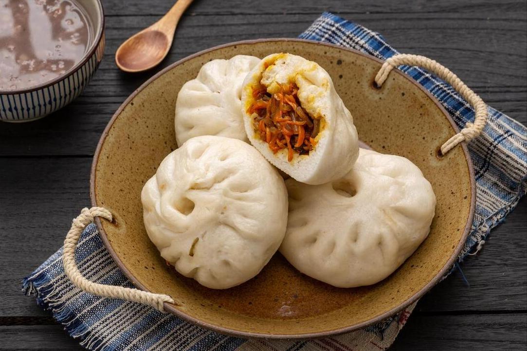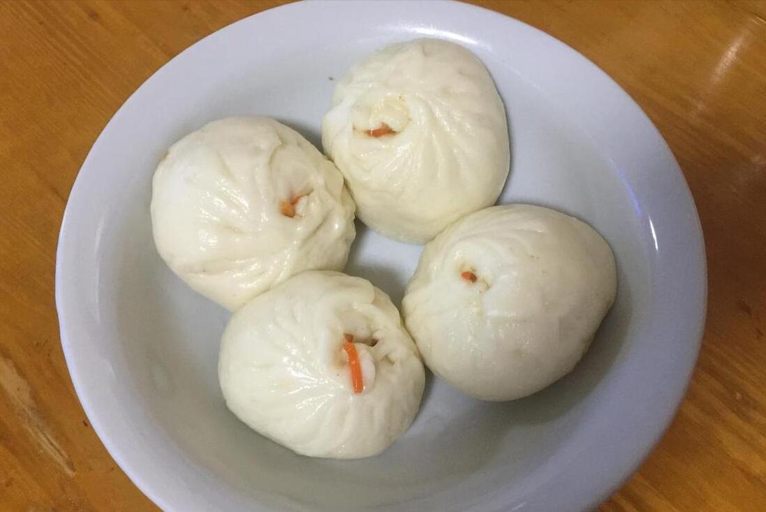 2、等雞蛋晾涼以後,我們把胡蘿蔔、雞蛋、蔥花倒在一起,加上鹽、五香粉、雞精、蠔油、香油來調味,充分攪拌均勻後,開始包包子。把醒發好的麪糰拿出來,揉勻後分成劑子,每一個劑子揉成包子皮,裹上包子餡,上鍋蒸熟即可開喫。