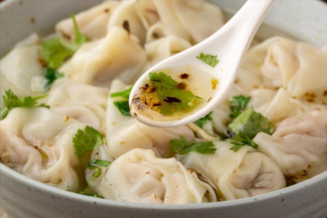 5、提前在碗里加上紫菜、蝦皮、鹽、白胡椒粉、雞精進行調味,等到餛飩煮熟以後,直接舀出來就可以啦,順便舀上點湯,最後往裏面撒上點蔥花或者香菜,即可開喫,莧菜這樣喫,好喫又有營養,補充充足的葉酸,身體更舒坦,趕快來試試吧!