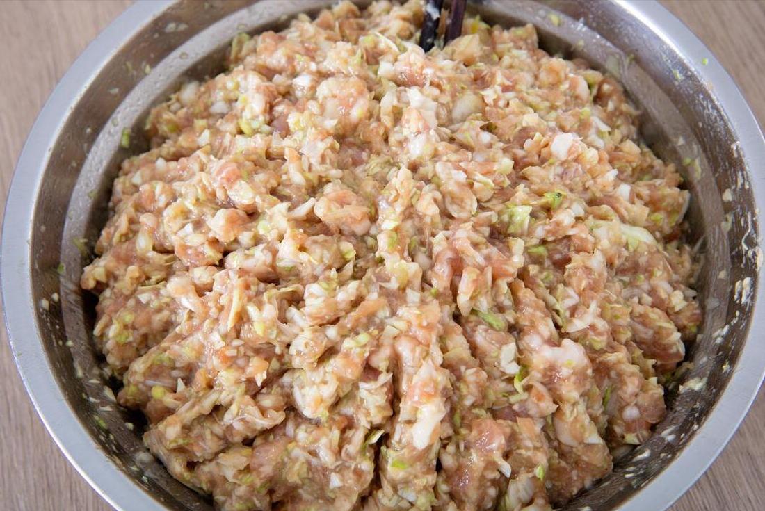 1、準備一塊豬肉,將其放在絞肉機中絞碎,然後倒出來加上花椒水,用筷子充分攪拌至上勁,這樣做出來的肉餡更多汁、更滑嫩。