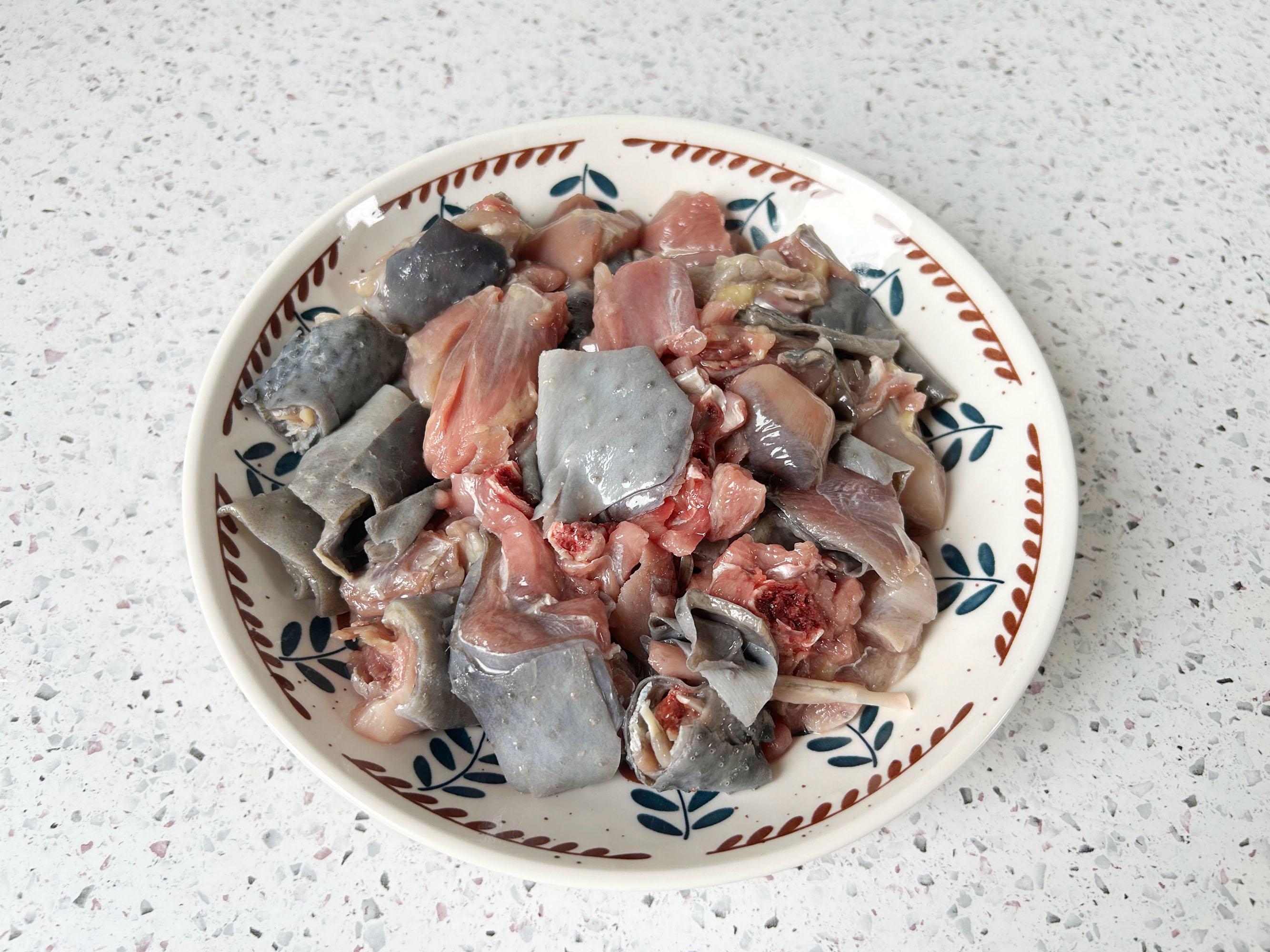 烏雞清理乾淨,剁成大約3-4釐米大的方塊。