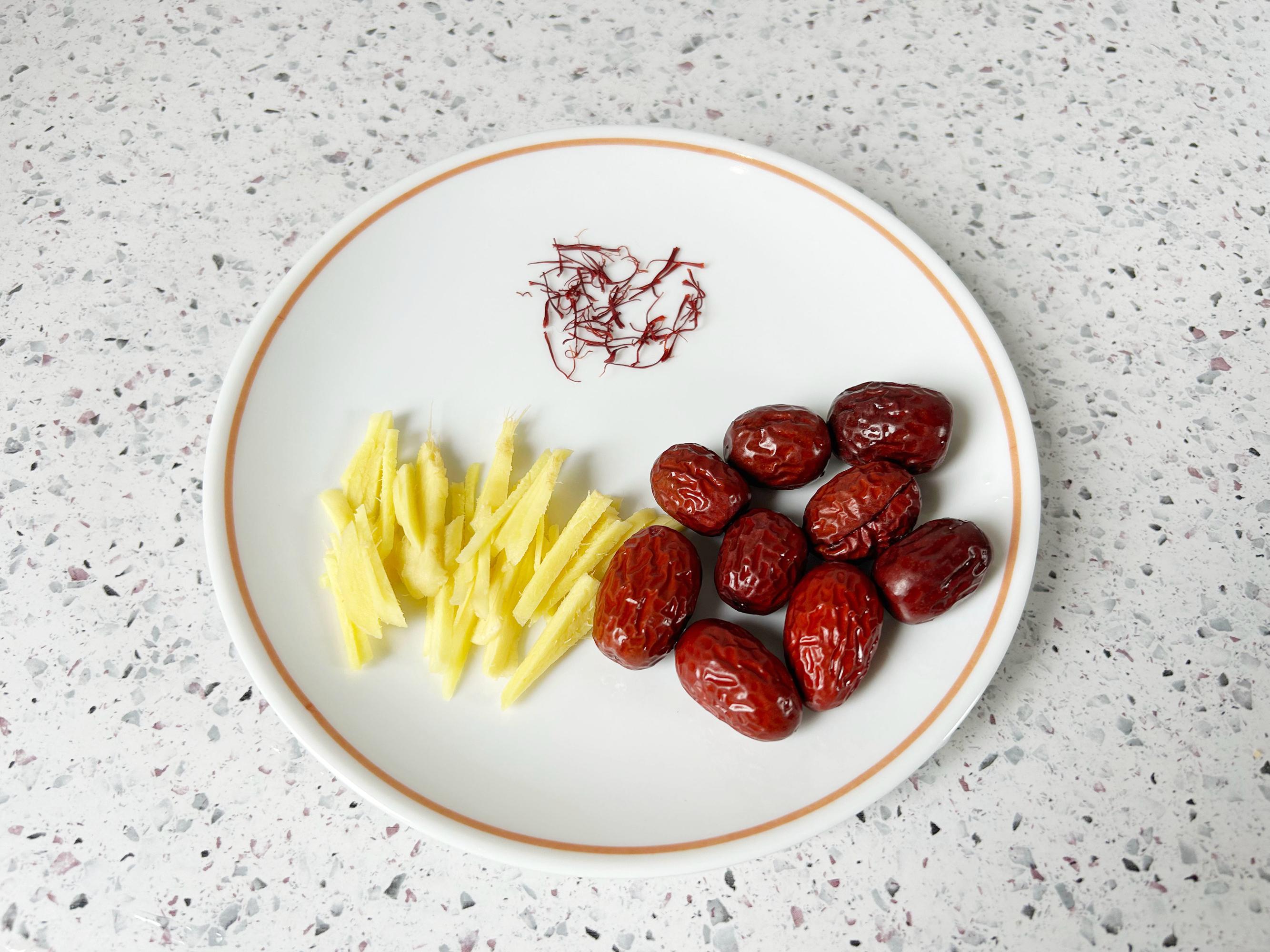 生薑去皮切絲,紅棗簡單沖洗一下,藏紅花準備一小撮就足夠了。