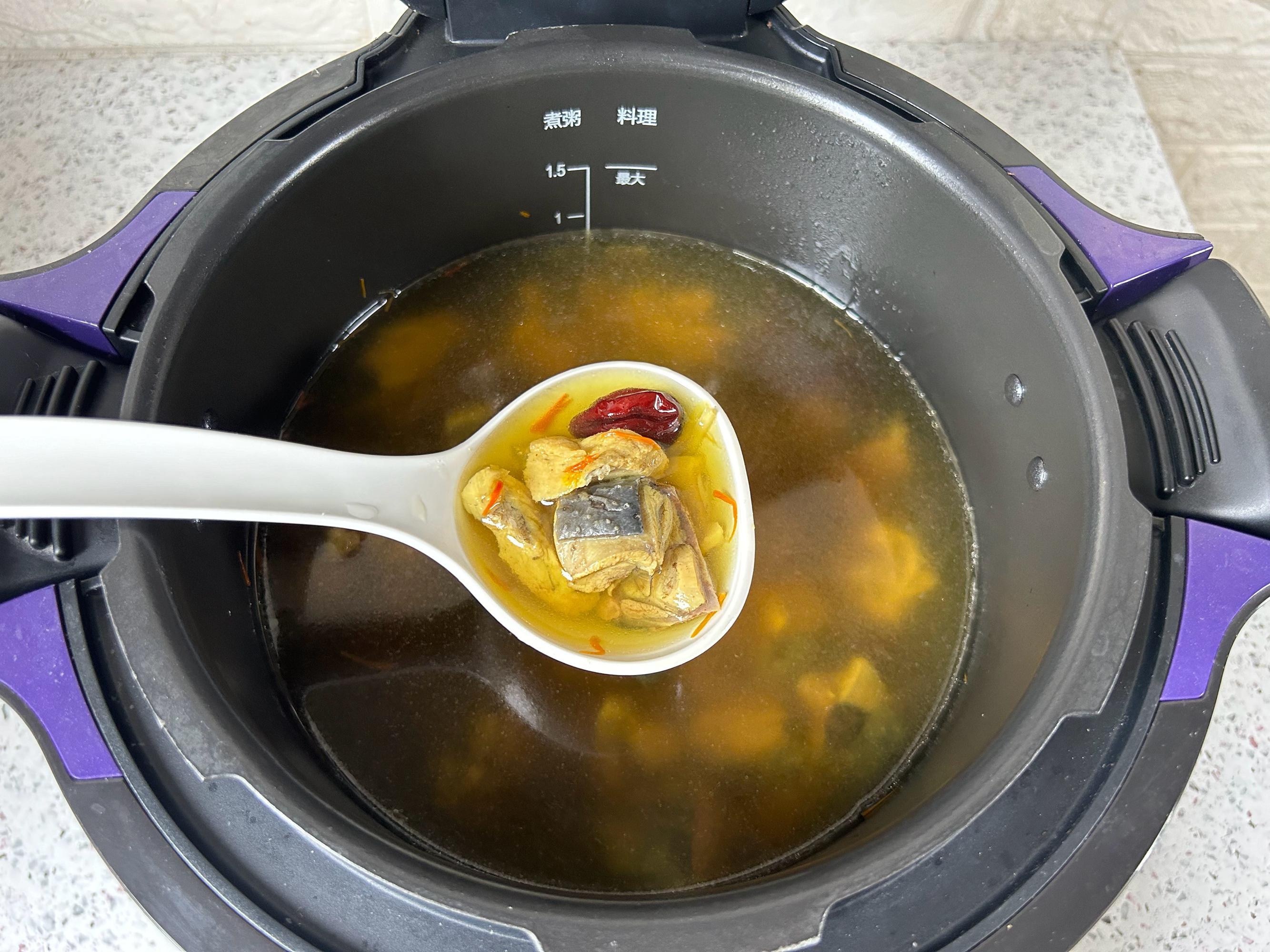 煲湯完成後,按照個人口味,加入適量的鹽調味,一道滋補又好喝的藏紅花紅棗烏雞湯就做好了。加了藏紅花的烏雞湯,顏色金燦燦的,特別好看。