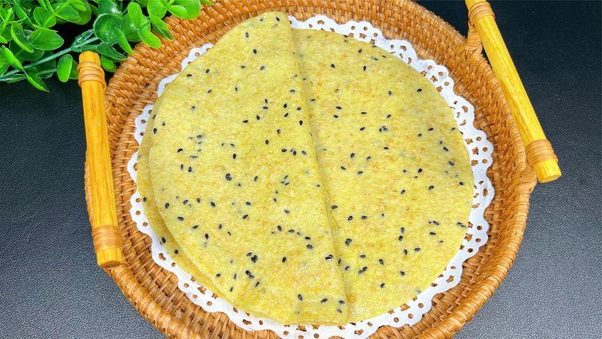 2、平底鍋刷油,倒入麪糊攤成薄餅。小火煎至兩面金黃即可。